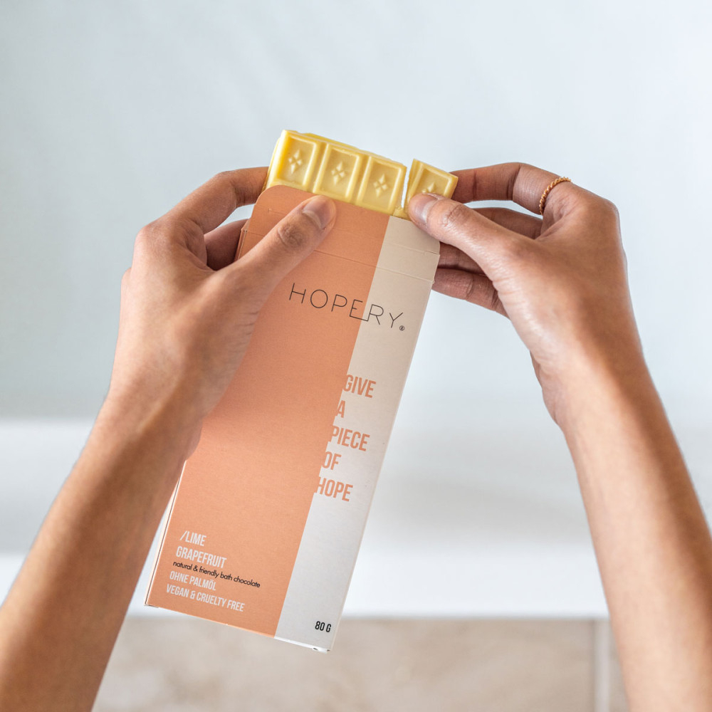 HOPERY ajută în 3 pași simpli – toate produsele HOPERY sunt fără ulei de palmier, HOPERY adoptă pui orfani de urangutan prin Centrul de salvare al urangutanilor BOS și susține Orangutan Outreach, organizație non-profit din New York care are drept țel salvarea urangutanilor orfani și strămutați.