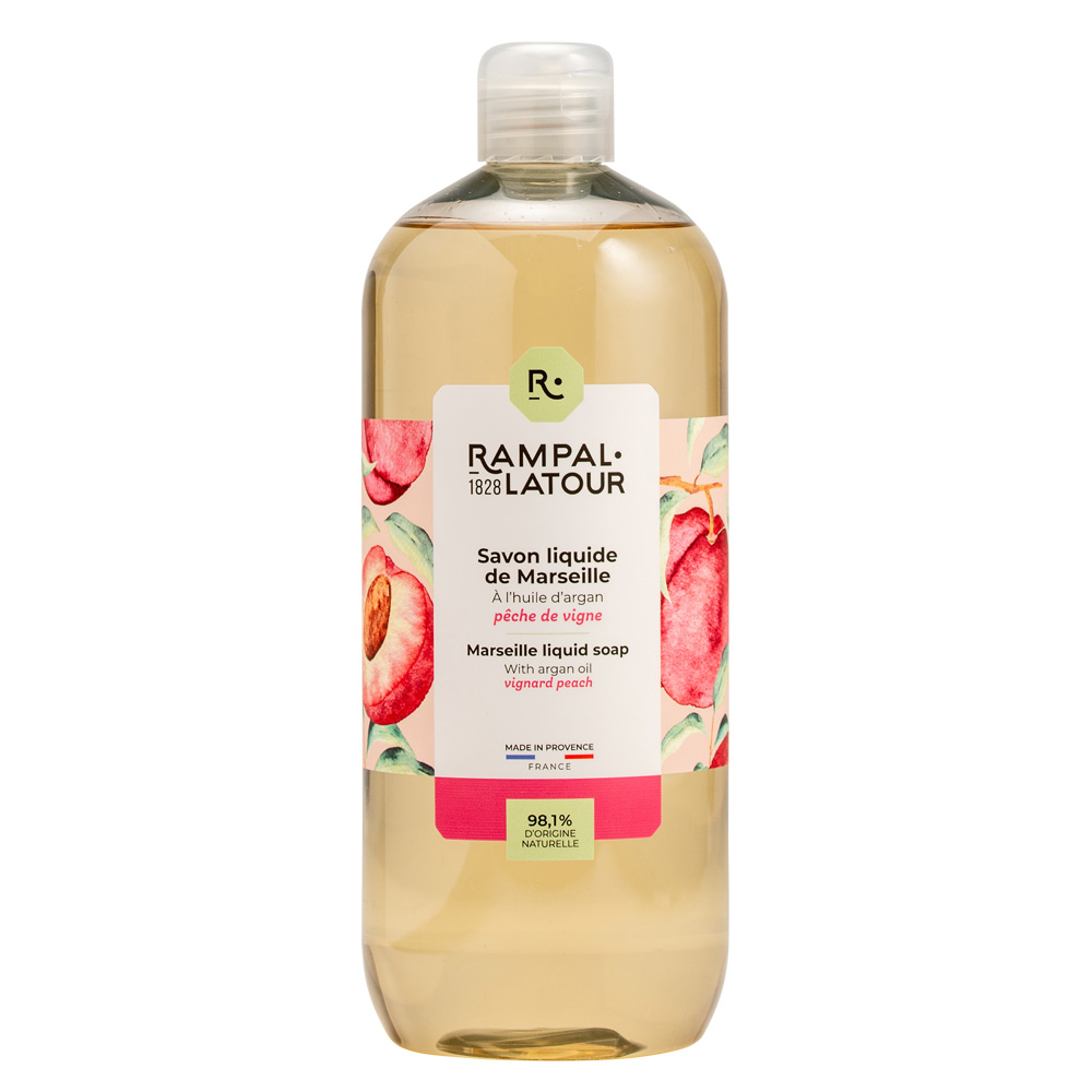 Artizani savonieri încă de la 1828, Rampal Latour vă prezintă varianta practică a săpunului de Marsilia - săpunul lichid. Realizat după reţeta tradiţională originală din uleiuri 100% vegetale, este bogat în glicerină naturală, ideal pentru spălarea mâinilor şi corpului.