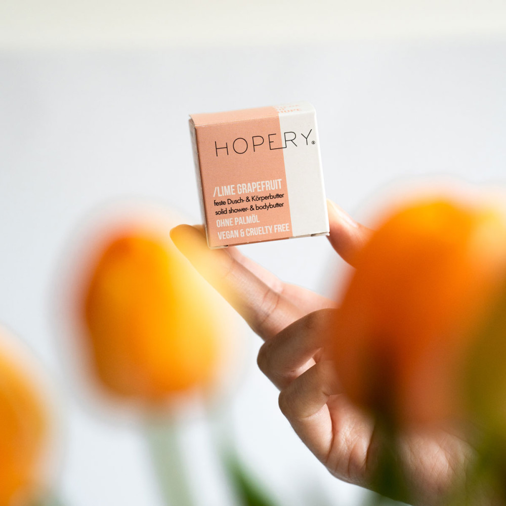 Toate produsele HOPERY sunt artizanale, cu rețete naturale provenite din tradiția de peste 30 de ani a familiei. Sunt vegane și cruelty free, cu certificarea programului Beauty Without Bunnies de la PETA. Nu se vor folosi niciodată: ulei de palmier, parabeni, PEG-uri, coloranți sintetici, parfum sintetic, ingrediente etoxilate, produse petroliere, ftalați, parabeni sau sulfați. Toate ambalajele sunt 100% reciclabile.