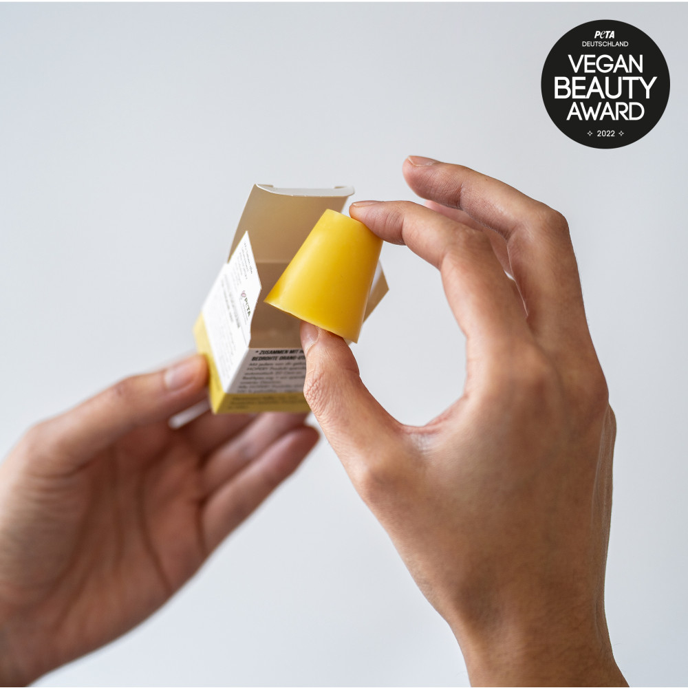 Un ser pentru față sub formă solidă, economic, vegan, fără plastic, fără ulei de palmier și produs de un business social? Exact, așa este!